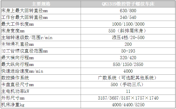 QK1319型數(shù)控管螺紋車床是針對石油、化工、冶金行業(yè)輸油管、鉆桿、套管的螺紋加工要求專業(yè)化設計制造的新型數(shù)控機床。機床采用雙卡盤夾緊工件、液壓換擋、數(shù)控系統(tǒng)自動控制,可******加工各種內(nèi)、外螺紋,并具有普通數(shù)控車床的功能。