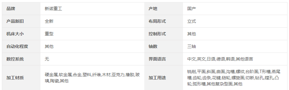 新諾精工產(chǎn)品系列:立式升降臺銑床|臥式升降臺銑床|萬能升降臺銑床|萬能回轉(zhuǎn)頭銑床|數(shù)控銑床|端面銑床|立式加工中心|臥式加工中心|龍門加工中心|