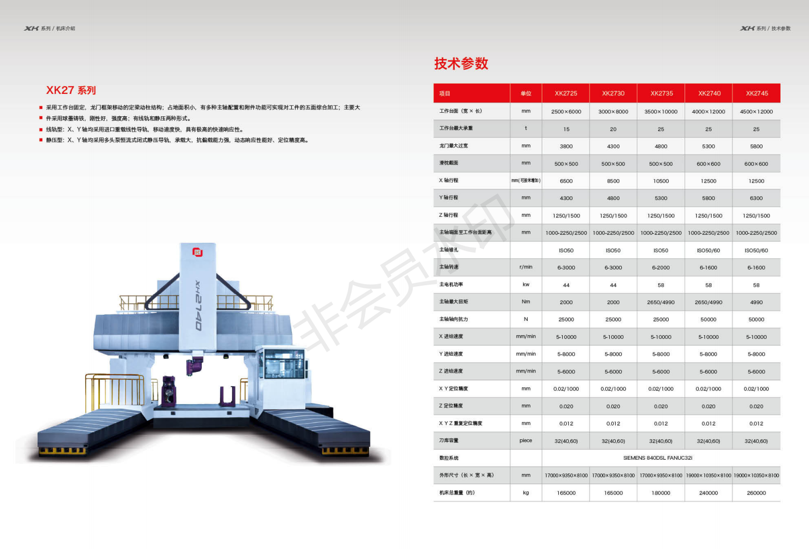 四、數(shù)控龍門鏜銑床 XK27 系列